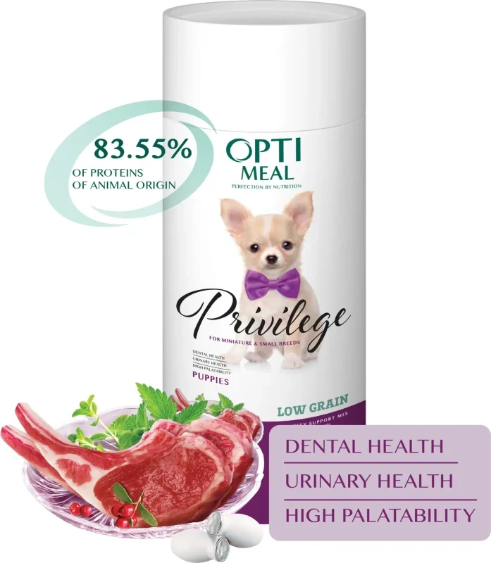 Optimeal Privilege Low-Grain Dry Food for Puppies of Small Breeds – Lamb