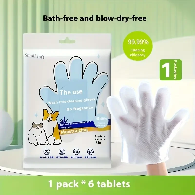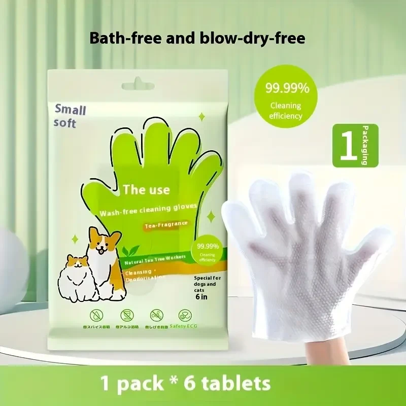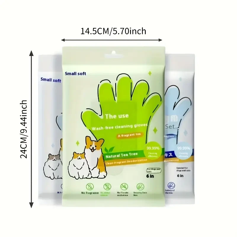 Keep your pets fresh, clean, and odor-free with Wash-Free Pet Cleaning Gloves — a quick and gentle alternative to baths. Each glove is infused with natural plant essences like tea tree and aloe vera, specially formulated for the skin pH of cats and dogs, ensuring safe, irritation-free cleaning.