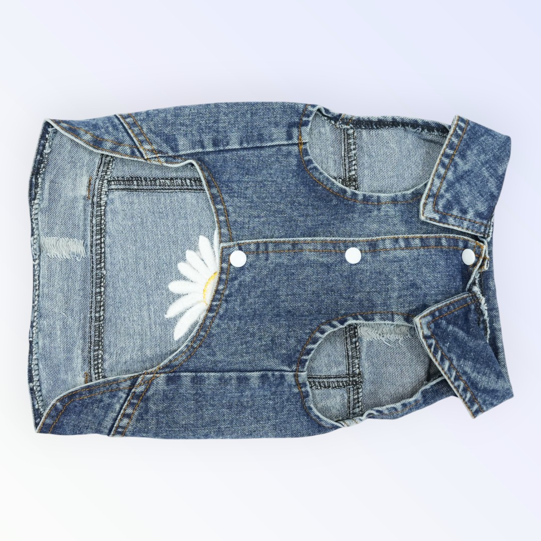 Pet Clothes Dog Jeans Jacket – Embroidered Daisy Design (M)