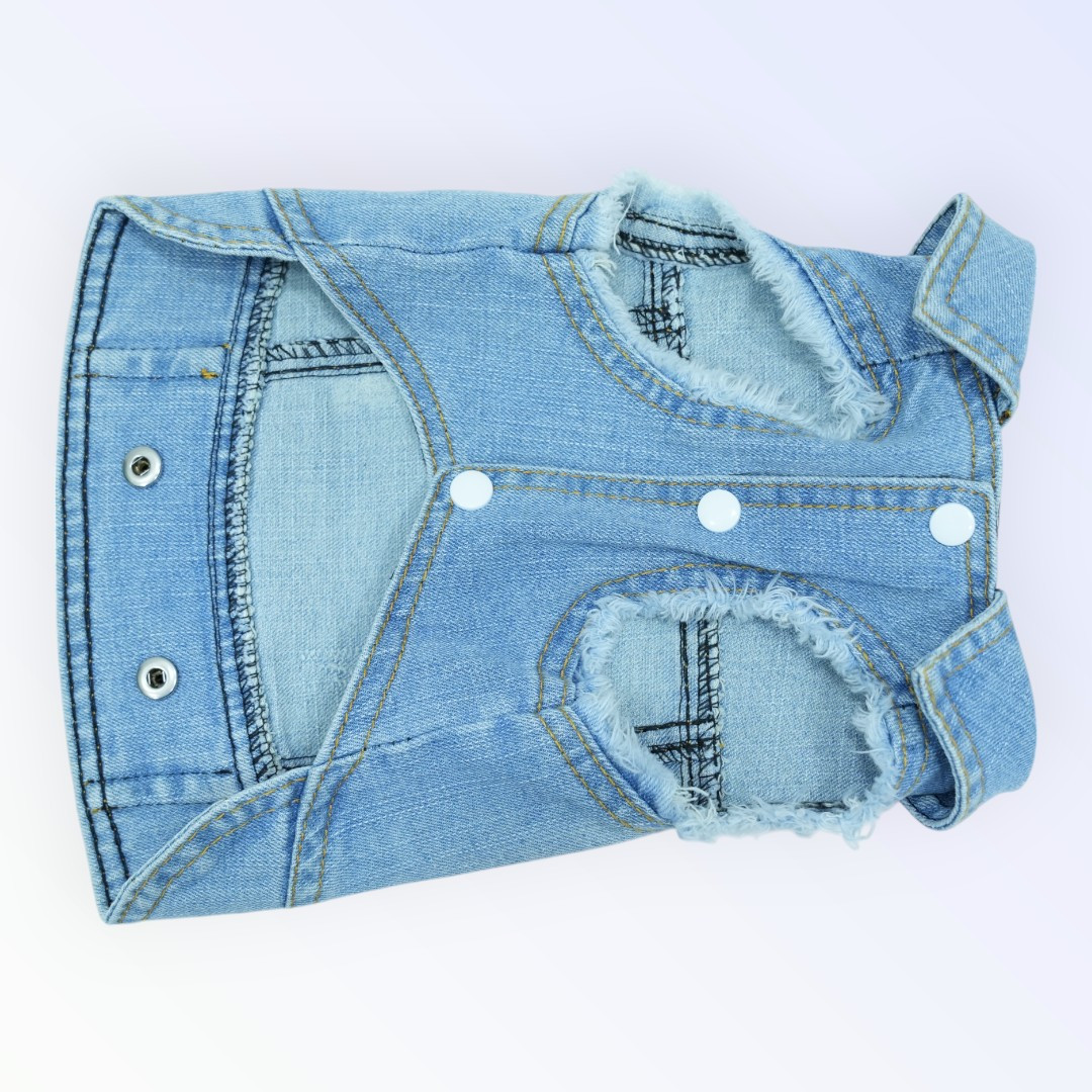 Perfect for the pet who joins every stretch and savasana, this light-washed denim jacket features the fun slogan “Mom’s Yoga Pawtner” in white print. Whether your pup actually strikes a downward dog or just naps on the mat, this jacket adds humor and charm to their look. Crafted from soft, durable denim with a comfy inner lining and frayed armholes, it's made for stylish movement and cuddly coolness.