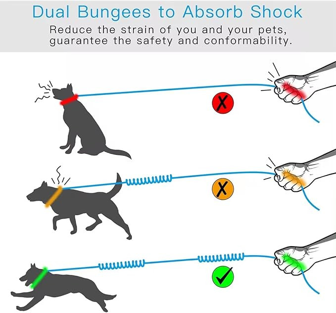 - Shock-Absorbing Bungee: Minimizes pulling tension, making it comfortable for both you and your pet.