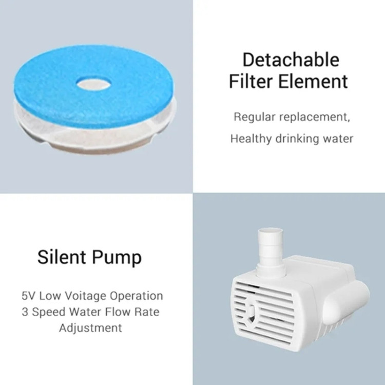 Operates with a 5V low-voltage pump and offers three adjustable water flow speeds, providing a quiet and energy-efficient experience.