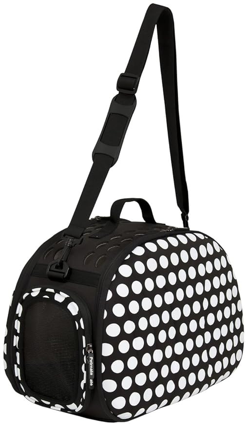Petmate Curvations Cat & Puppy Tote Carrier – Black/White Dots (Up to 10 lb)