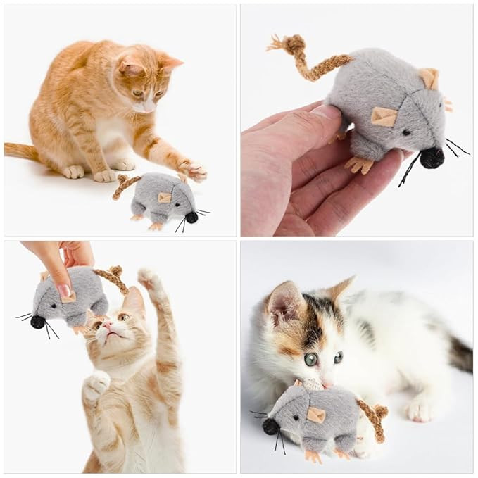This realistic plush mouse toy is designed to engage and entertain cats, encouraging their natural hunting instincts. The combination of a soft furry body and a braided tail makes it an ideal toy for pouncing, batting, and carrying around.