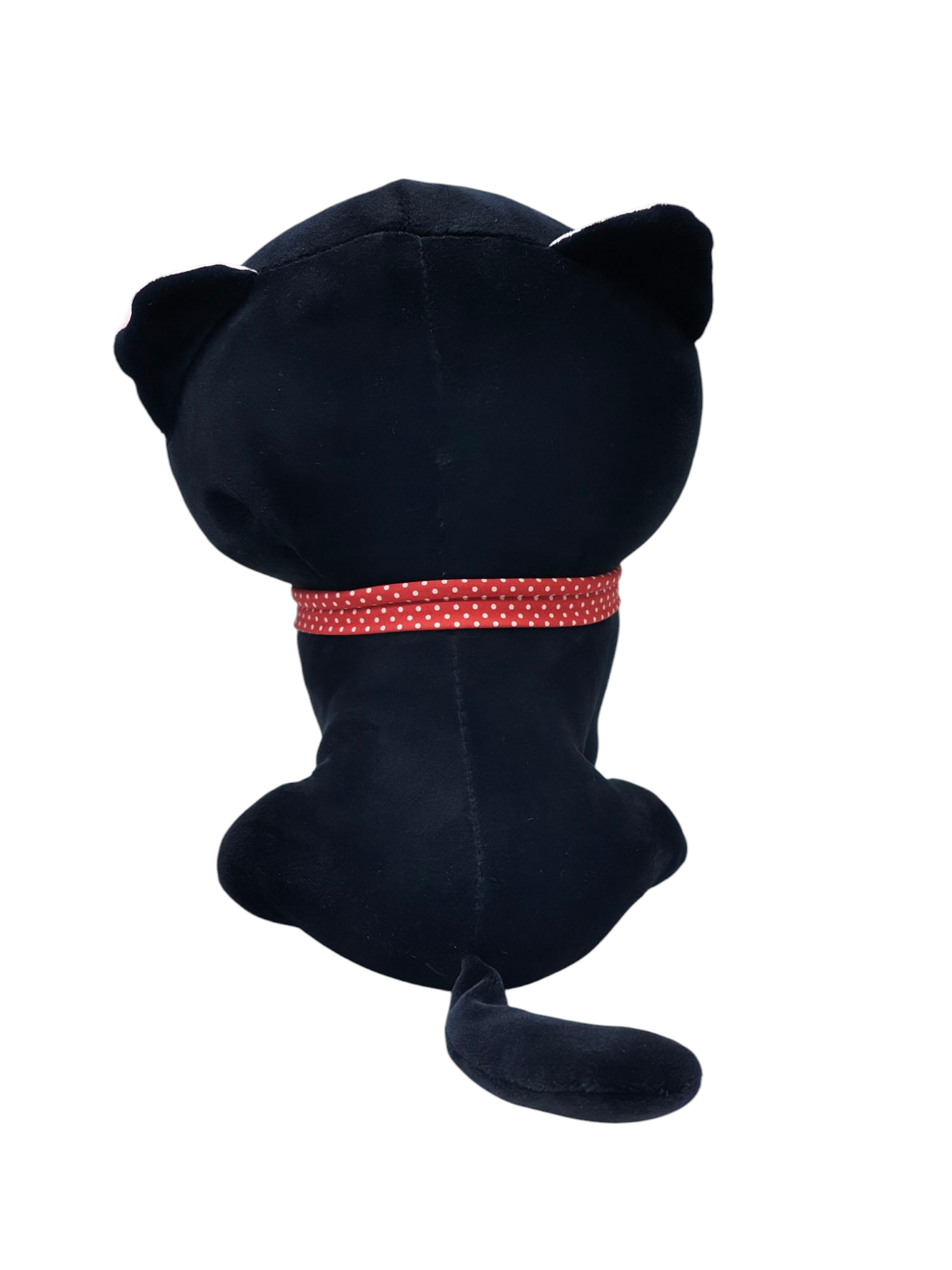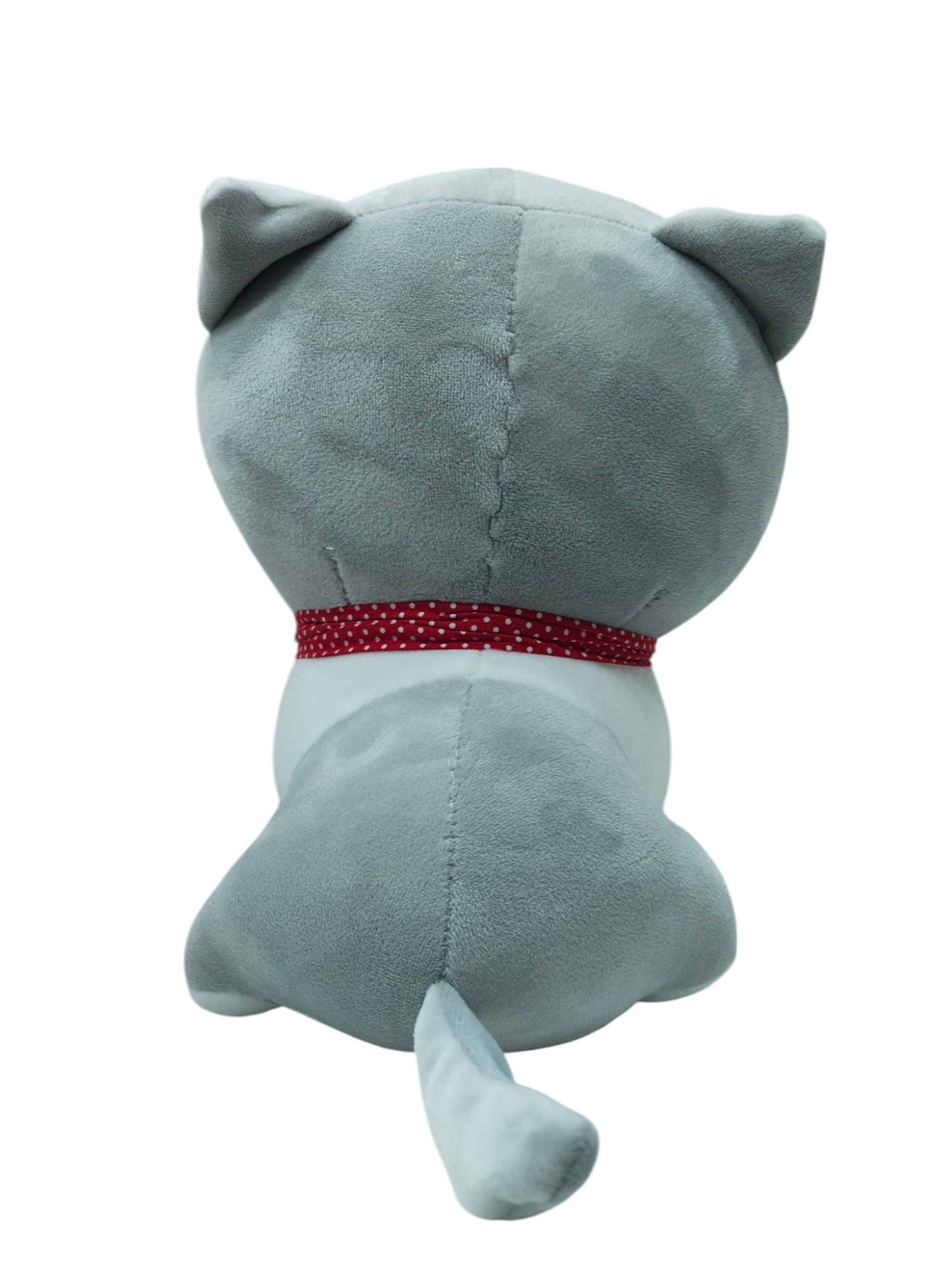 Designed with lovingly embroidered details—expressive eyes, tiny smiles, and whiskered snouts—each Plushy Cat is finished with a red polka-dot collar that adds a playful touch to its dapper look.