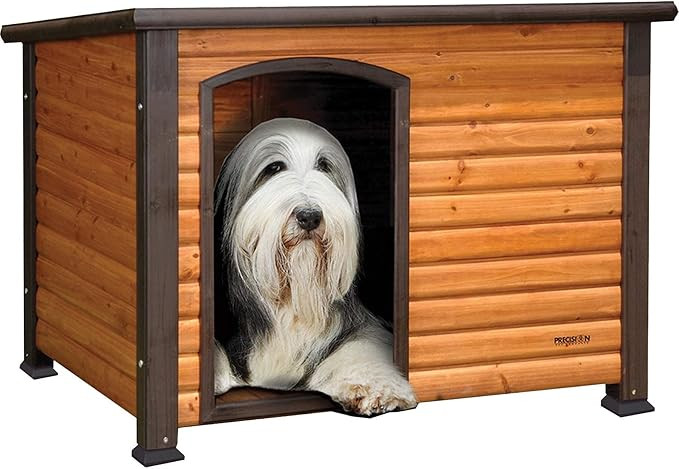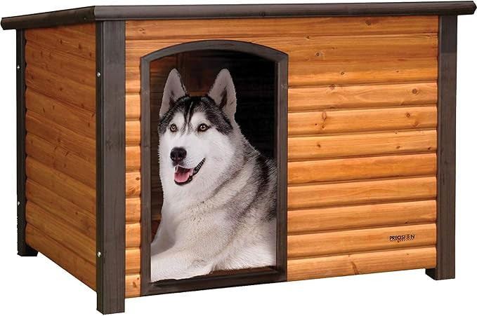 The Precision Pet Extreme Outback Log Cabin Dog House provides a sturdy, weather-resistant shelter that keeps your dog comfortable and protected outdoors while adding a stylish touch to your backyard.