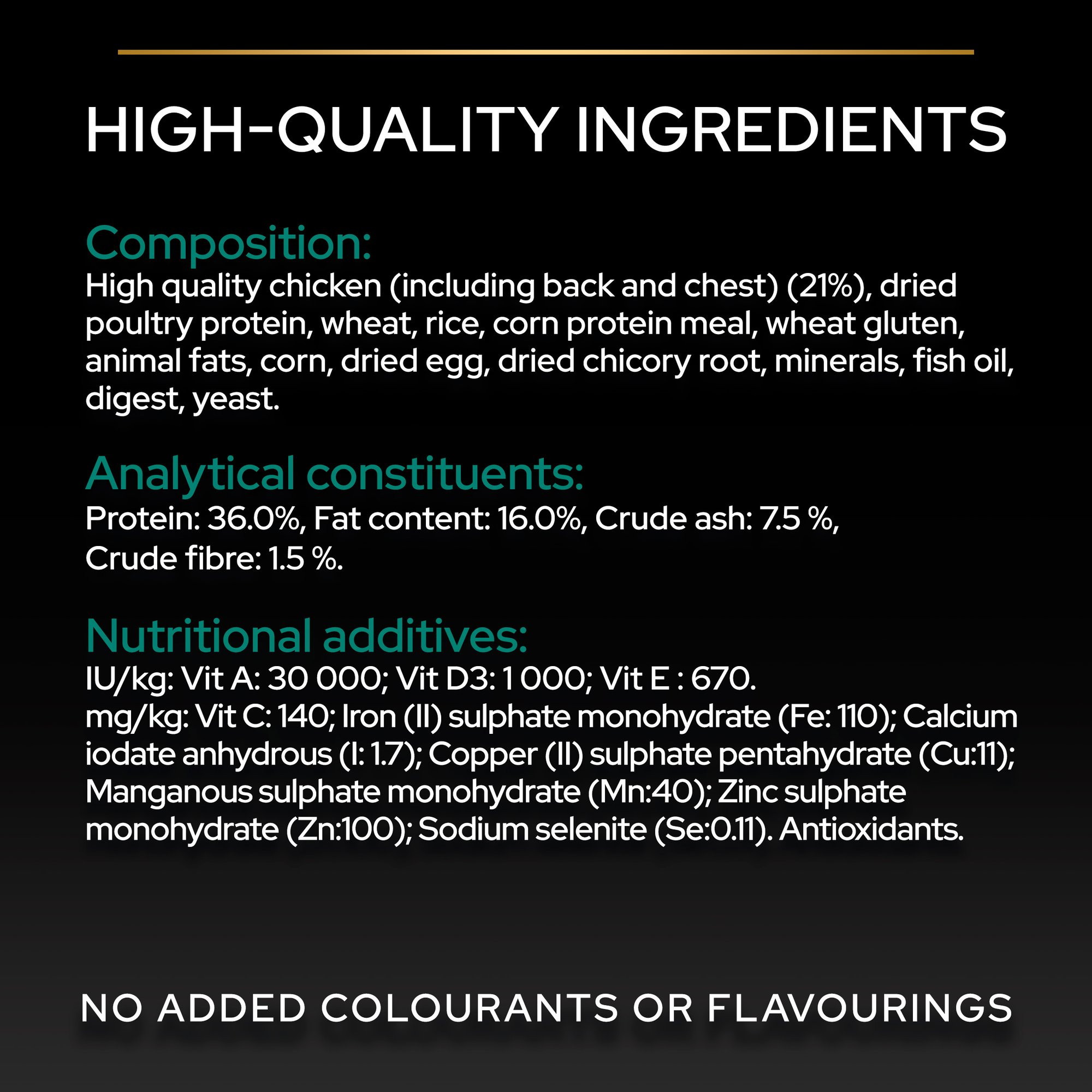Science-based nutrition with no added colourants or flavourings.