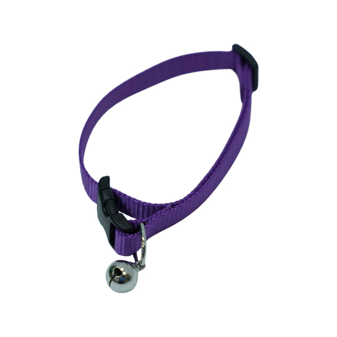 This elegant purple cat collar is perfect for adding a touch of sophistication to your cat's look. It comes with a small silver bell that creates a gentle chime, making it easier to keep track of your pet’s movements. The collar has an adjustable strap to ensure a snug fit and a quick-release buckle for added safety and convenience.