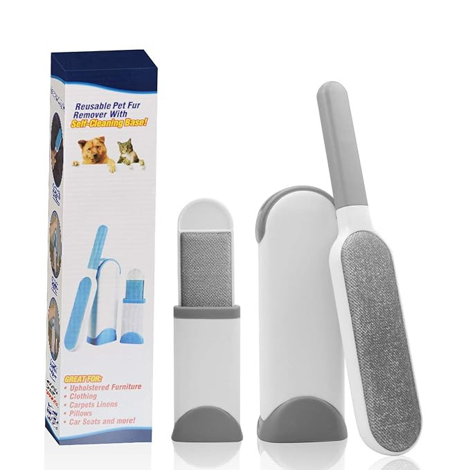 Reusable Pet Fur Remover with Self-Cleaning Base