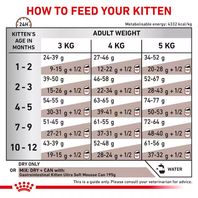 Kitten Age (months)3 kg Adult Weight4 kg Adult Weight5 kg Adult Weight