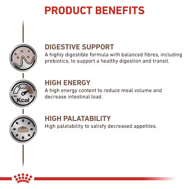 Since 1968, Royal Canin has been working with veterinarians and pet experts to create science-backed nutrition tailored to specific health needs. This palatable loaf-style wet food provides high energy density and targeted digestive support, making it easier for dogs with sensitive digestion to receive the nutrition they need.