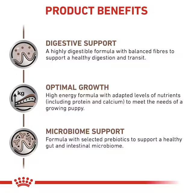 This veterinary diet provides highly digestible proteins, prebiotics, and balanced fibres to promote digestive health, while its high energy density and carefully adapted nutrient profile (including protein and calcium) ensure your puppy grows strong and healthy.