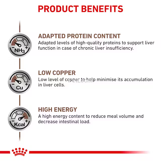 • Adapted Protein Content: Provides moderate levels of highly digestible, high-quality proteins to support liver function while minimizing liver workload.