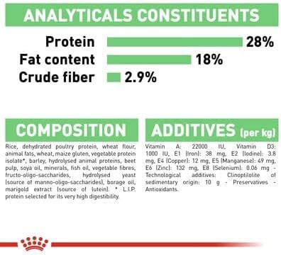 Digestive Comfort: Contains highly digestible proteins (L.I.P.) and a balanced blend of soluble and insoluble fibres to aid healthy digestion and transit.