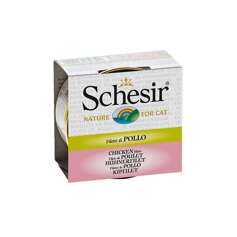 Schesir Chicken Fillets in Broth 70g Can – Complementary Wet Food for Adult Cats