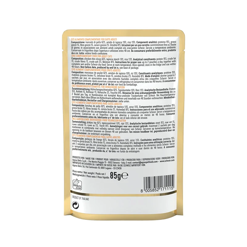 Schesir Chicken Thin Slices in Sauce 85g Pouch – Complementary Wet Food for Adult Cats
