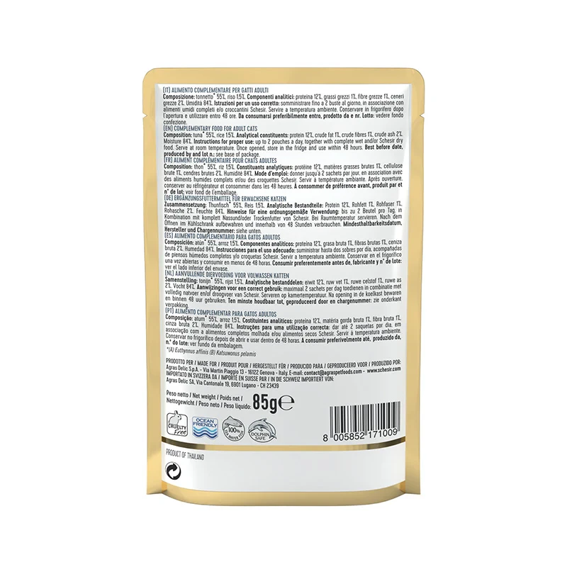 Schesir Tuna in Jelly 85g Pouch – Complementary Wet Food for Adult Cats