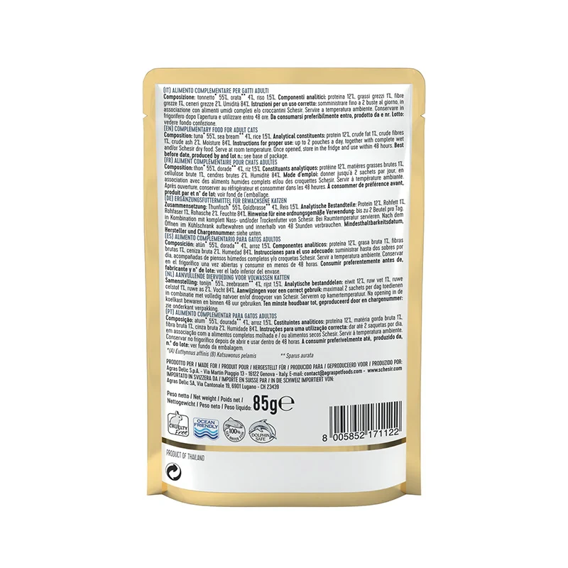 Schesir Tuna With Seabream in Jelly 85g Pouch – Complementary Wet Food for Adult Cats
