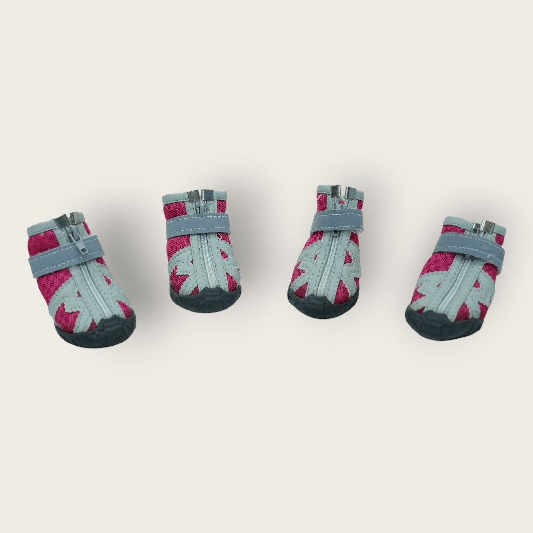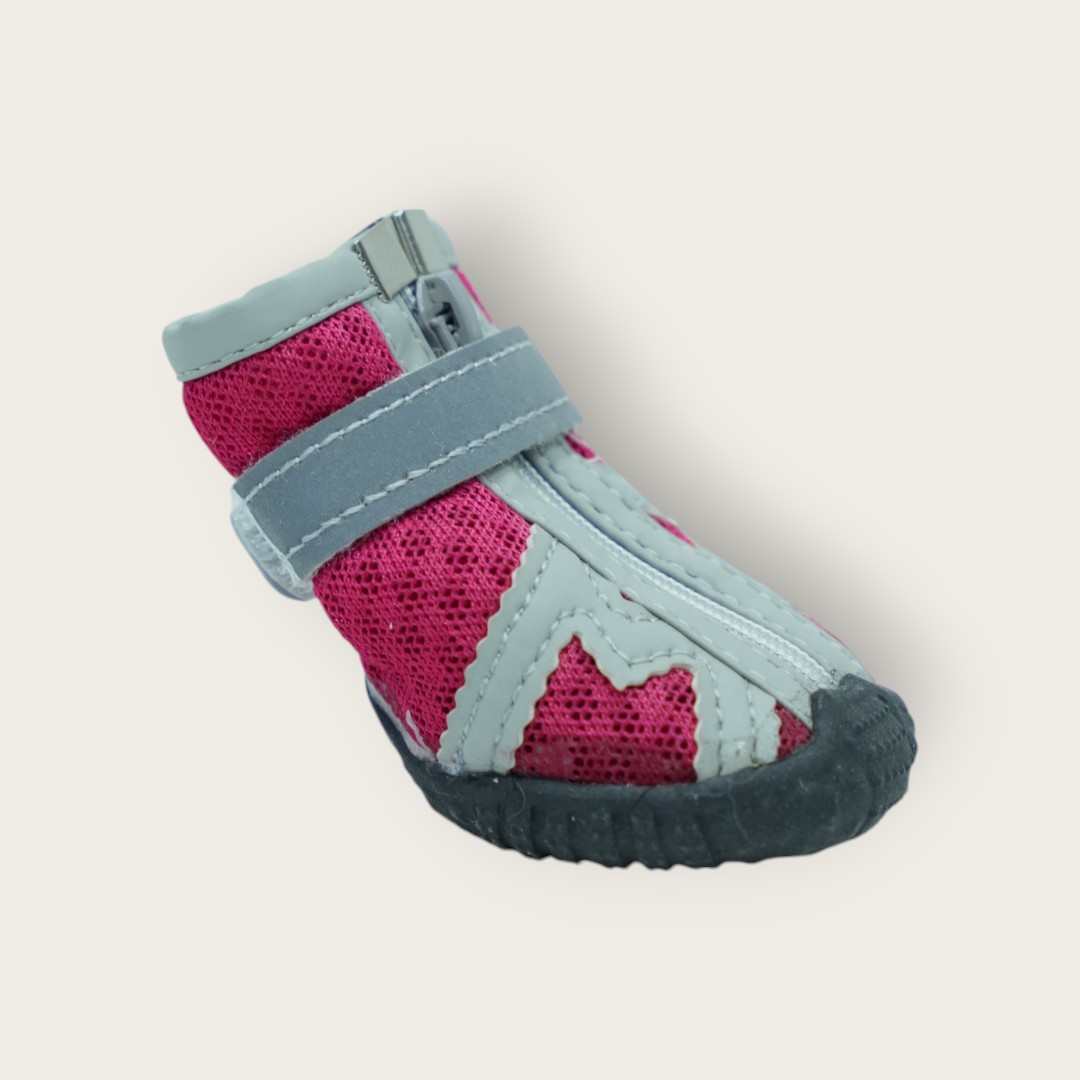 Designed for adventure and everyday protection, these sporty red and grey dog shoes combine durability, comfort, and a secure fit. Built with a rugged anti-slip sole, they shield your dog’s paws from harsh outdoor conditions like snow, heat, and rain, while also preventing slips on indoor hard floors. The dual-closure system with a front zipper and Velcro strap ensures a snug and easy fit, making them perfect for active dogs on the move.