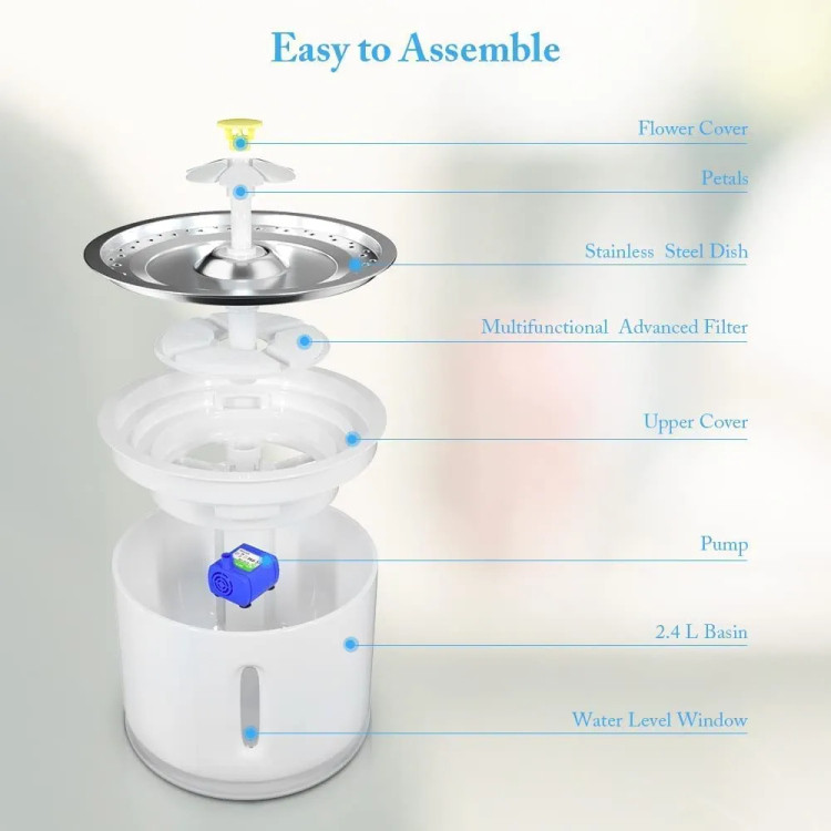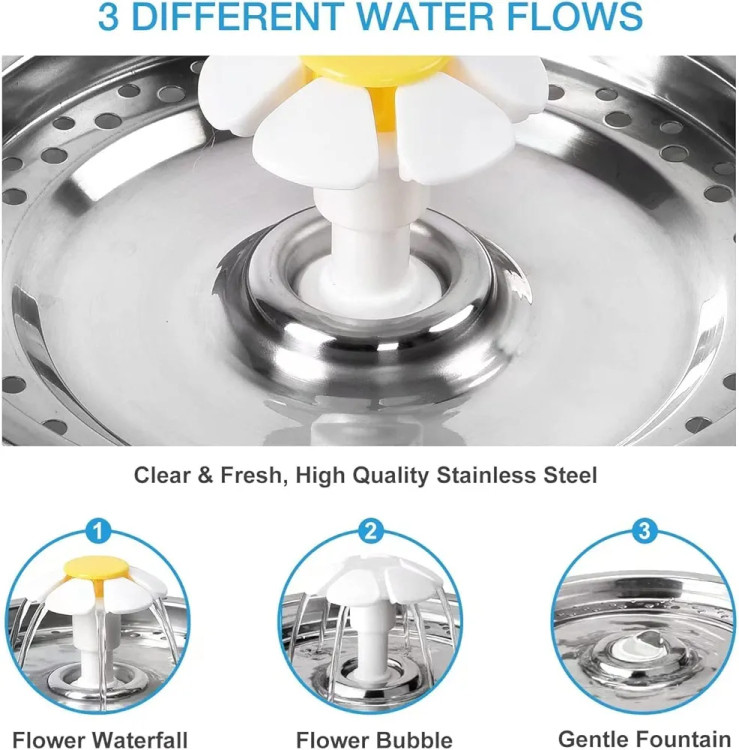 - Three Water Flow Modes: Features Flower Waterfall, Flower Bubble, and Gentle Fountain options to match your pet's preferences.
