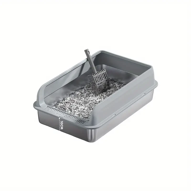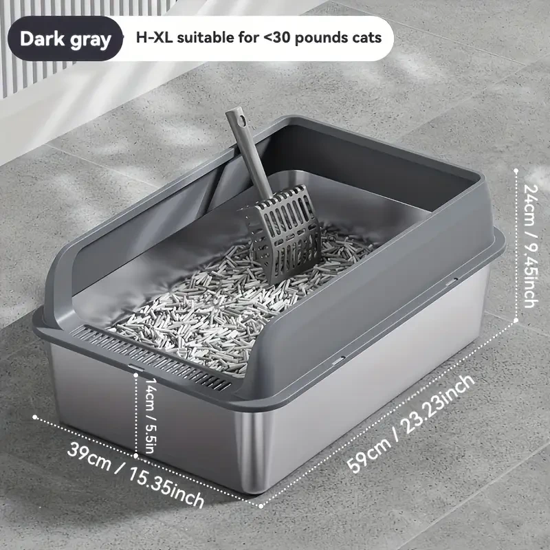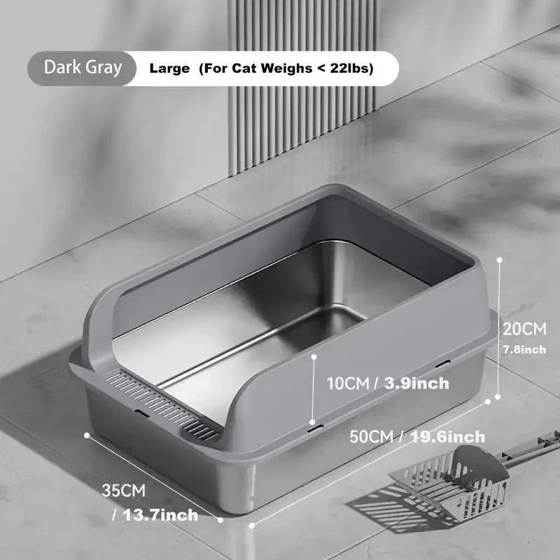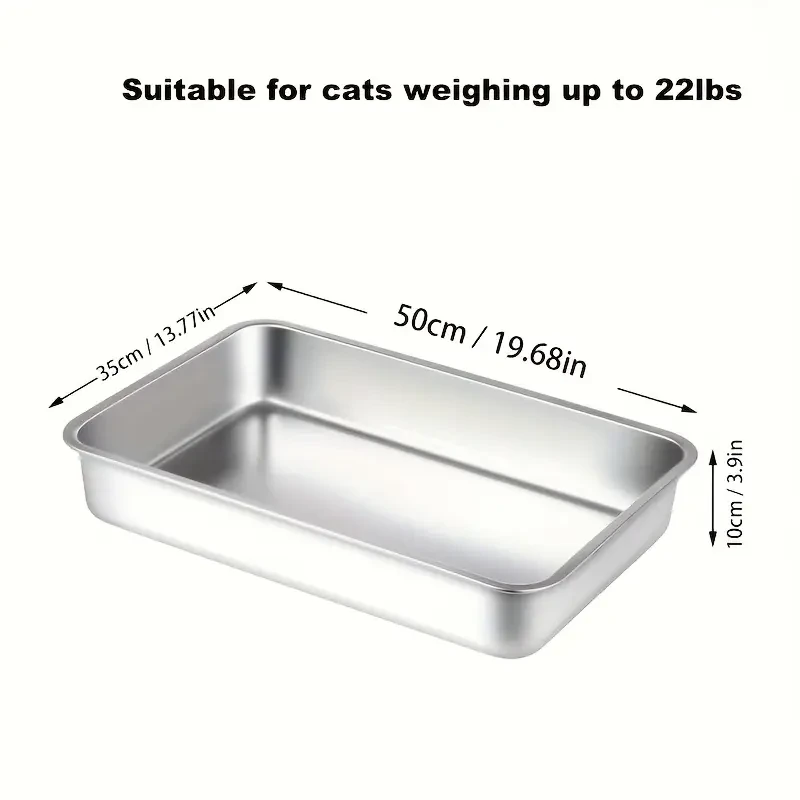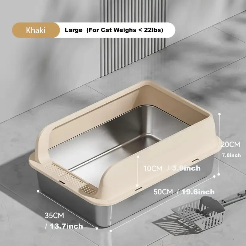 Stainless Steel Cat Litter Box – With High Sides & Scoop