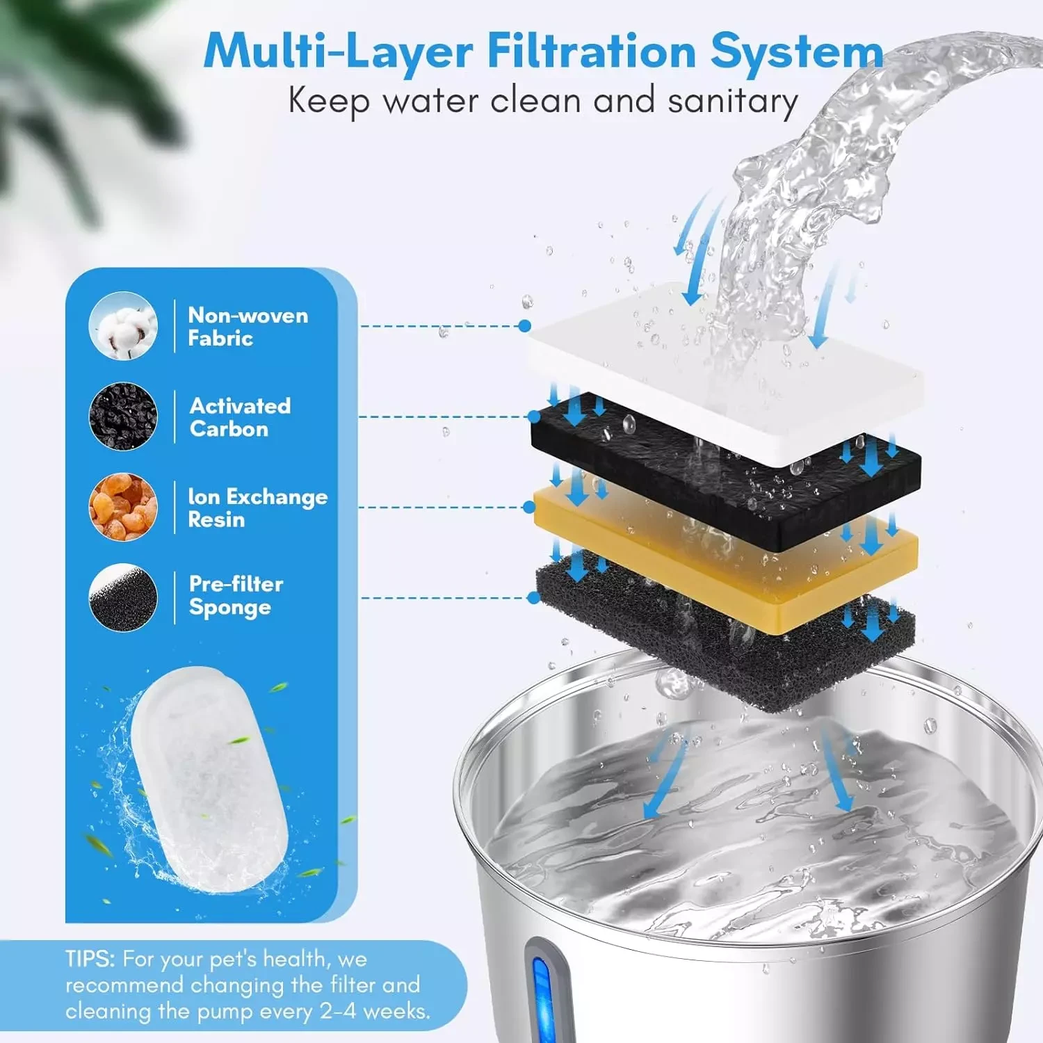 This stainless steel fountain is the perfect blend of style, hygiene, and practicality—making it a must-have hydration station for your beloved pets.