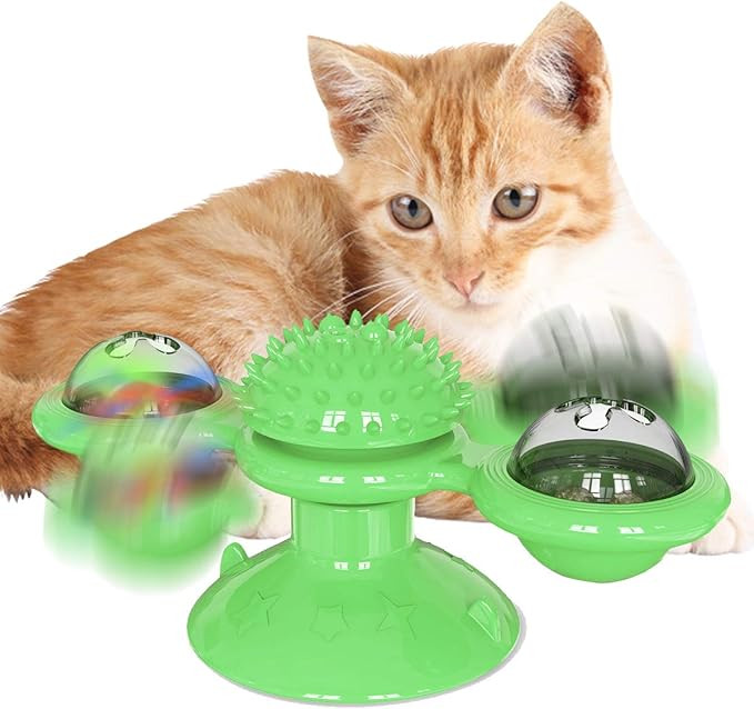 Stimulating Design: The rotating balls with bell sounds keep your cat engaged while the spiked center encourages face and gum rubbing.