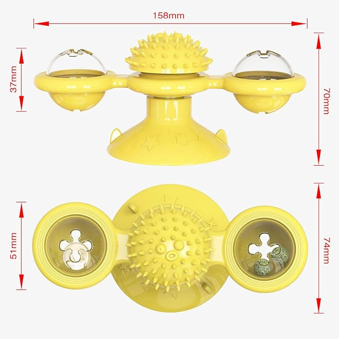 Treat your feline friend to a multi-functional toy that does more than just entertain! This suction spinner toy features a dual-dome design with spinning orbs and a textured central bump that’s ideal for face rubbing and teeth molar activity. Made from soft, non-toxic TPR material, it ensures your cat’s safety while playing, biting, or scratching.