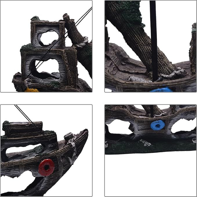 - Realistic Design: A weathered shipwreck with vibrant accents, creating a captivating focal point for your aquarium.