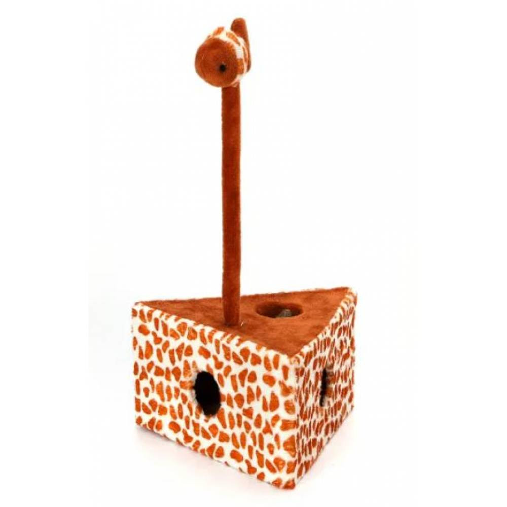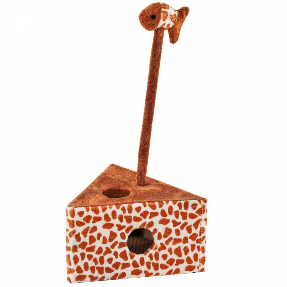 Treat your feline friend to a cozy retreat and endless entertainment with this giraffe-patterned triangle cat house and scratcher. Designed with a soft plush finish, an interactive fish toy, and multiple peek-through holes, this compact unit is perfect for playful cats who love to scratch, hide, and pounce.