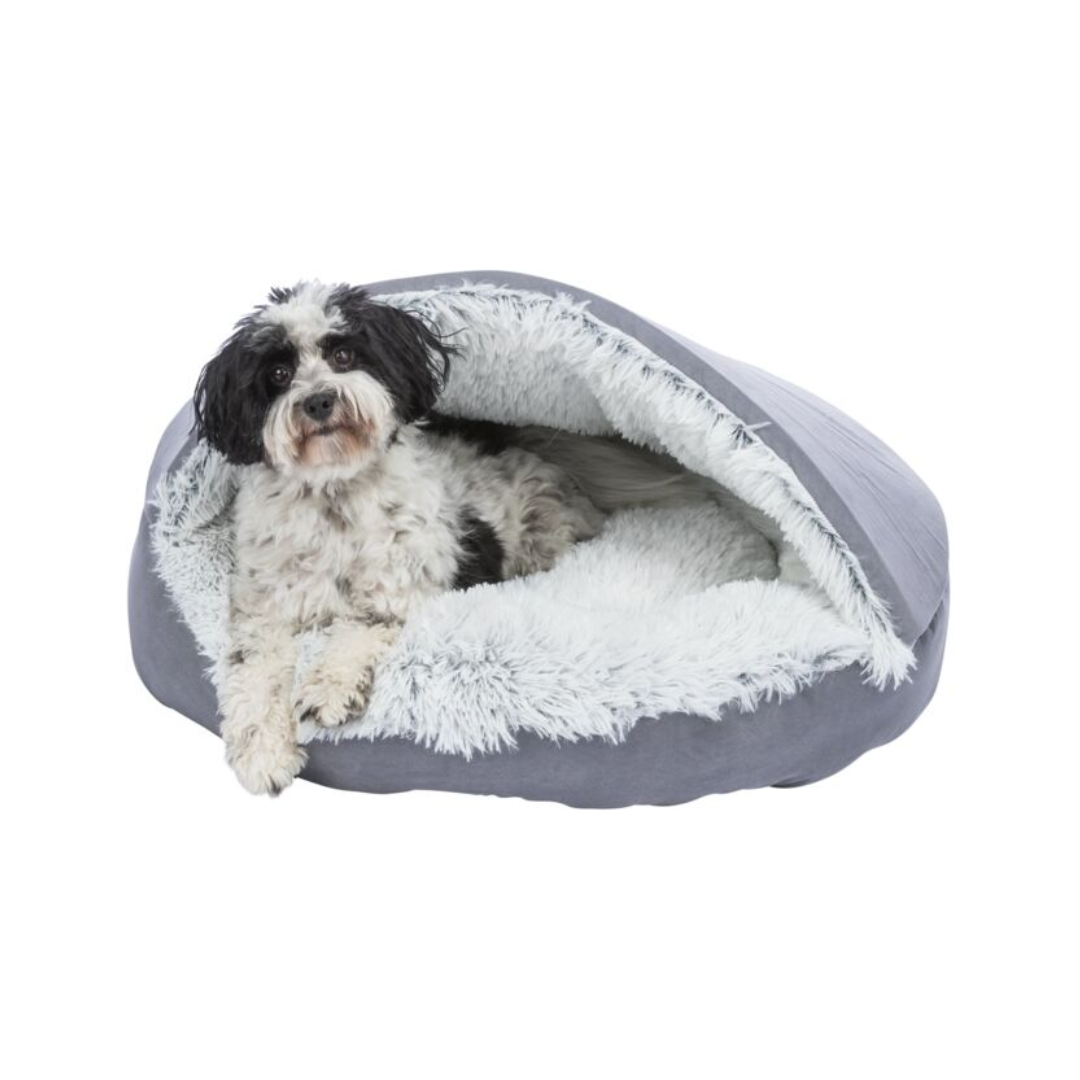 The Trixie Cave Bed Harvey from the SOFT Edition combines cosy comfort with a soft, open design that offers both relaxation and a sense of security. Made from velour and long-haired plush, it provides a warm and inviting surface ideal for restful lounging. The durable polyester cover and polyester fleece filling with foam padding ensure gentle support while maintaining shape.