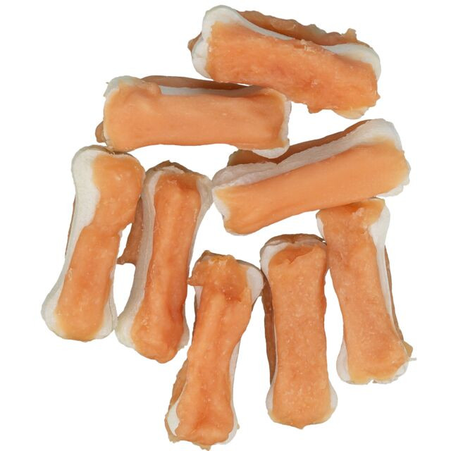 - Rawhide, chicken meat (20%), corn starch, glycerine, sorbitol, minerals.