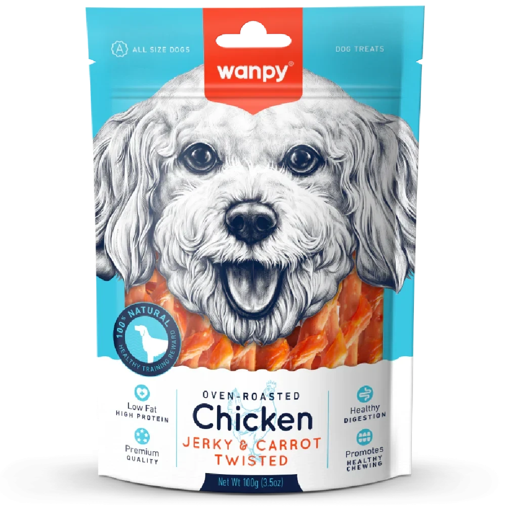Wanpy Chicken Jerky & Carrot Twisted – Premium Natural Treats for Dogs (100g)