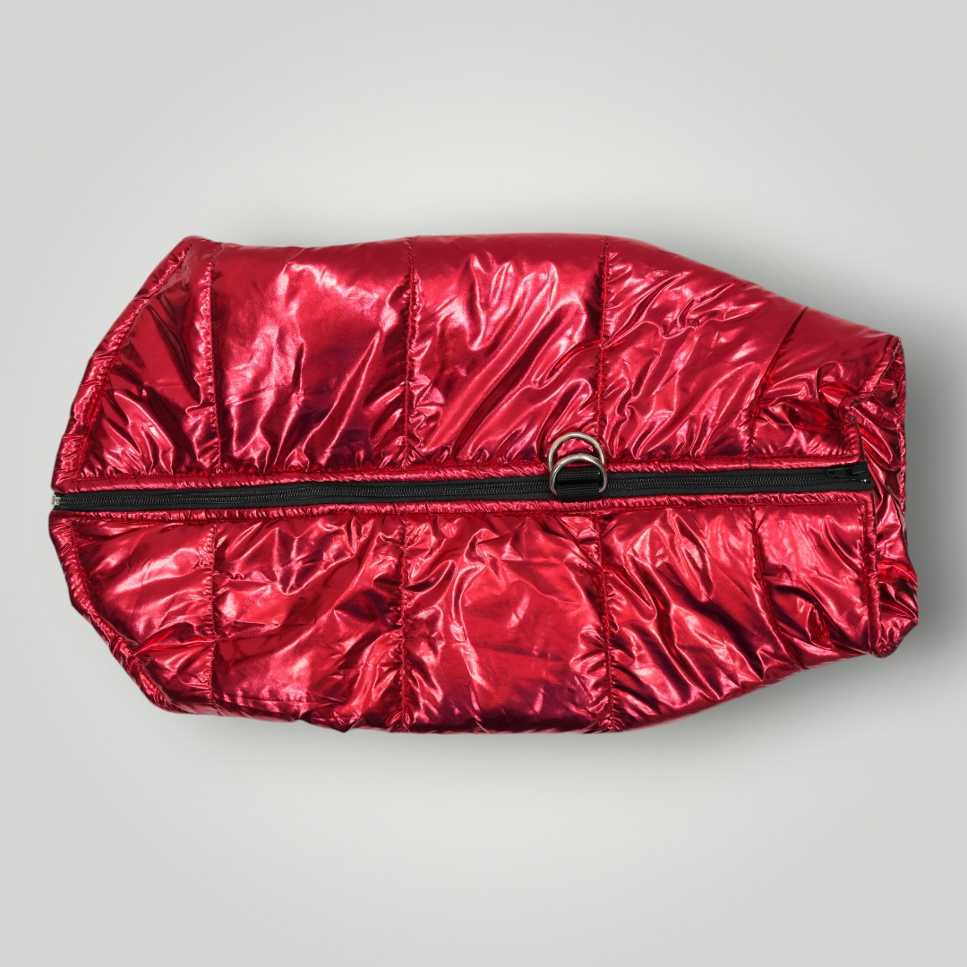 Make a statement with this vibrant red waterproof jacket designed to keep your pet warm, dry, and stylish during cold and wet weather. The glossy, quilted exterior adds flair, while the cozy padding ensures comfort with every step.
