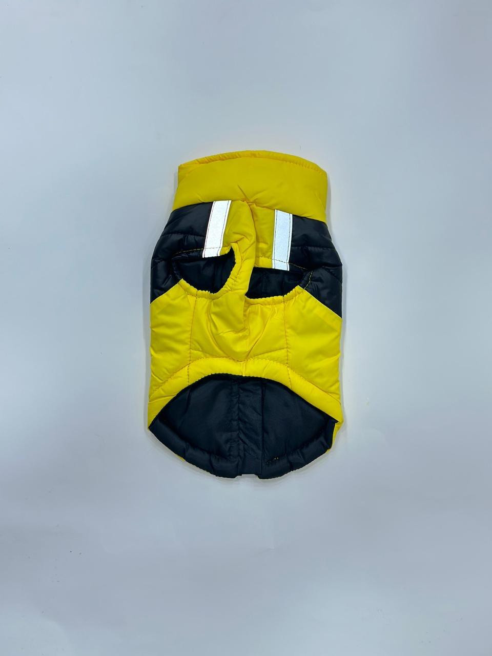 This yellow and black waterproof winter jacket is a bold and functional choice for keeping your furry companion warm and stylish during cold days. With a built-in double D-ring harness and a secure zip-up front, this jacket ensures comfort, safety, and a modern look—all in one.