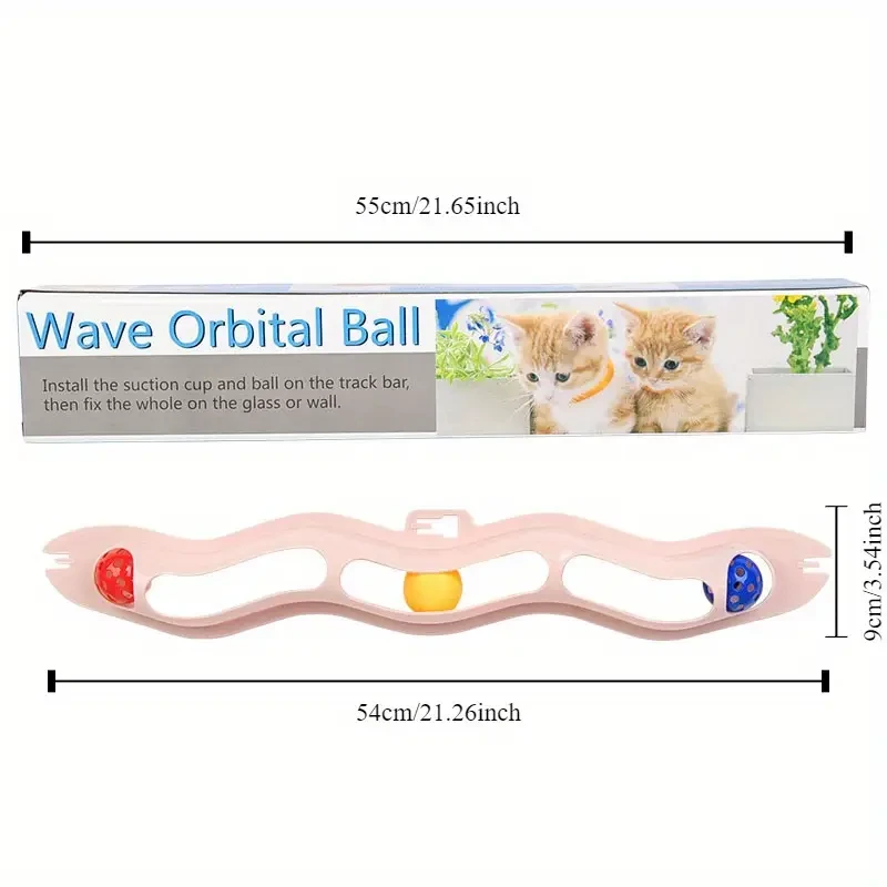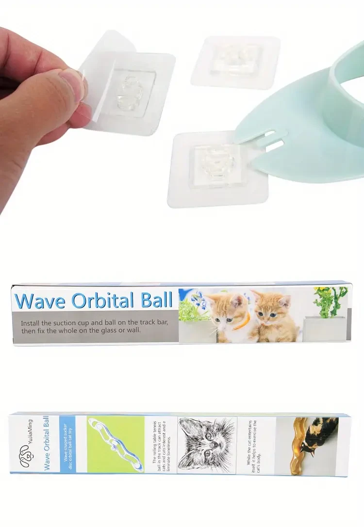 Stimulate your cat's curiosity and keep them active with the Wave Orbital Ball Track Toy. This interactive toy is designed with a wave-shaped track that securely mounts to any flat surface like glass or tile using strong suction cups. The balls roll freely inside the track, encouraging playful pawing, chasing, and jumping.