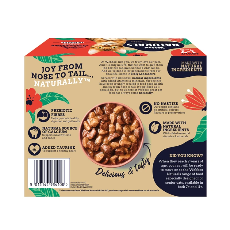 Webbox Naturals Adult Meat in Gravy delivers wholesome nutrition and delicious variety, supporting your adult cat’s health and happiness with every satisfying meal.