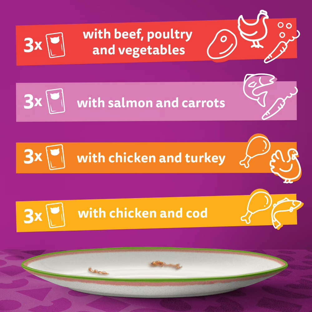 Whiskas is committed to reducing environmental impact. The fish in this recipe is sustainably sourced, and the packaging is 100% recyclable and made from recycled paper.