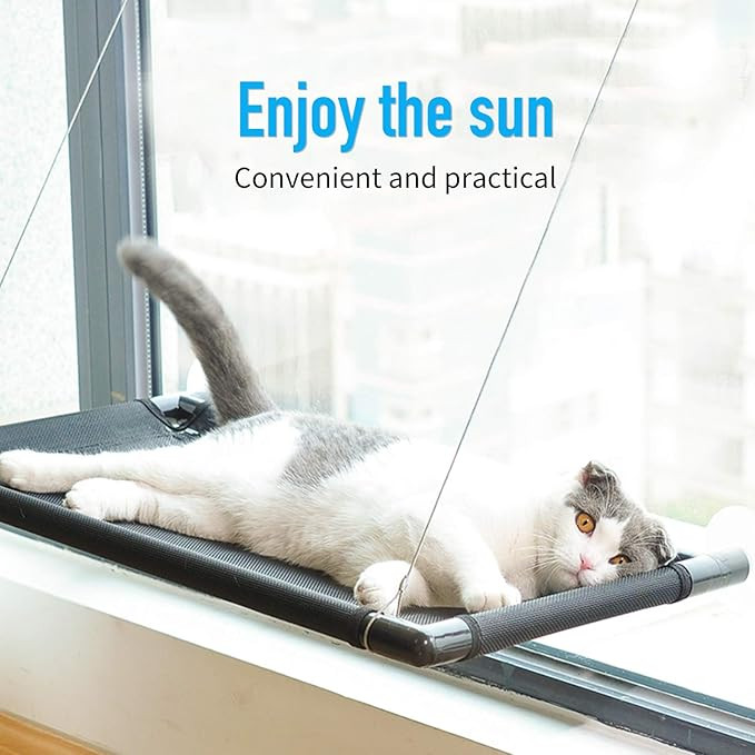 Let your cat “Enjoy the sun” in style and comfort with this convenient and practical window hammock. Whether napping or bird-watching, it’s a cozy retreat they’ll love.