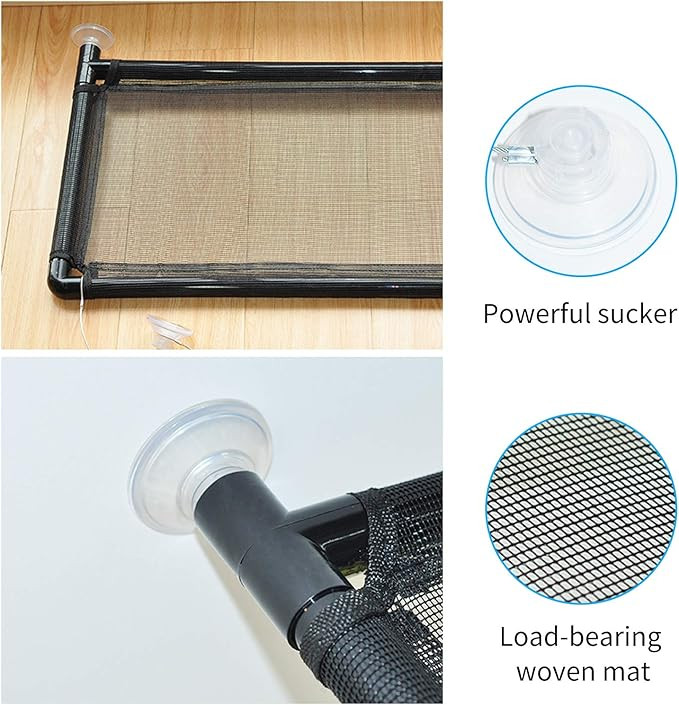 Powerful Suction Cups: Equipped with heavy-duty suction cups that hold firmly to windows or smooth surfaces, ensuring the hammock stays securely in place.