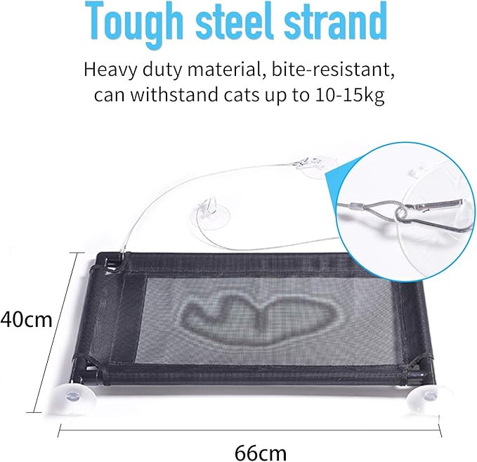 Window-Mounted Cat Hammock – Sturdy Sunbathing Perch for Cats (66x40cm)