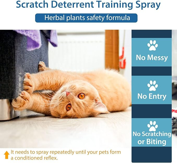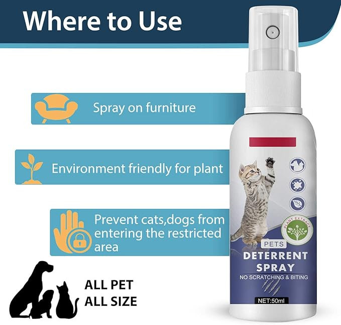Yegbong Pets Deterrent Spray is designed to help prevent destructive behaviors in pets, such as scratching furniture or biting household items. Formulated with natural plant extracts, it is safe for both cats and dogs and can be applied directly to surfaces you want to protect.