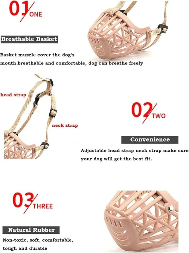 Adjustable Breathable Dog Basket Muzzle – Soft Rubber with Straps (Multiple Sizes)