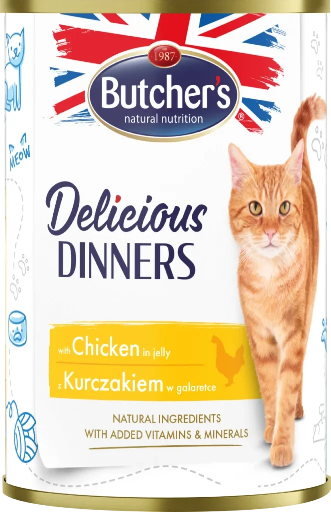 Butcher's Delicious Dinners Chunks in Jelly with Chicken – Complete Grain-Free Wet Food for Cats (400g)