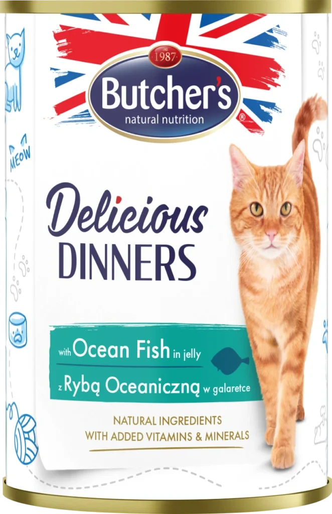 Butcher's Delicious Dinners Chunks in Jelly with Ocean Fish – Complete Grain-Free Wet Food for Cats (400g)