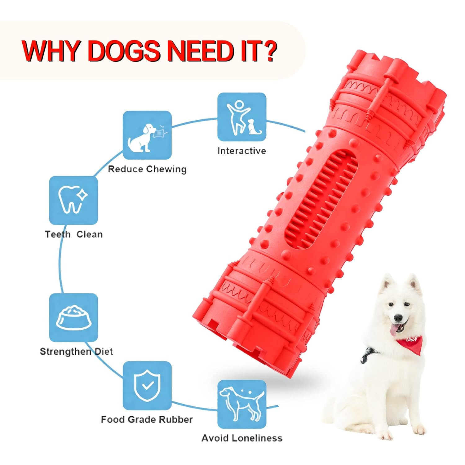 With its textured ridges and grooves, the Chew Tower helps clean teeth, massage gums, and prevent tartar buildup while your dog chews. It also doubles as an interactive toy for fetch and bonding games, reducing destructive chewing and boredom. You can even add treats or spreadable food inside to promote slower eating and better digestion.