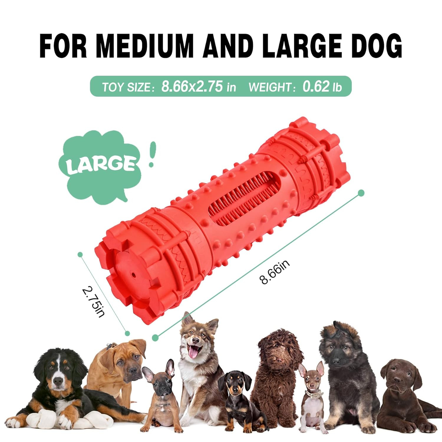 Durable Build: Tough natural rubber withstands strong chewers.