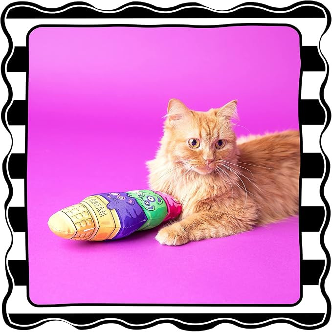 Give your cat the ultimate “snacktastic” kicker with the FAT CAT® Kitty Kickz® Mice Cream Cone — a fun, colorful toy designed to satisfy your kitty’s natural instincts to bunny kick, bat, fling, and pounce!