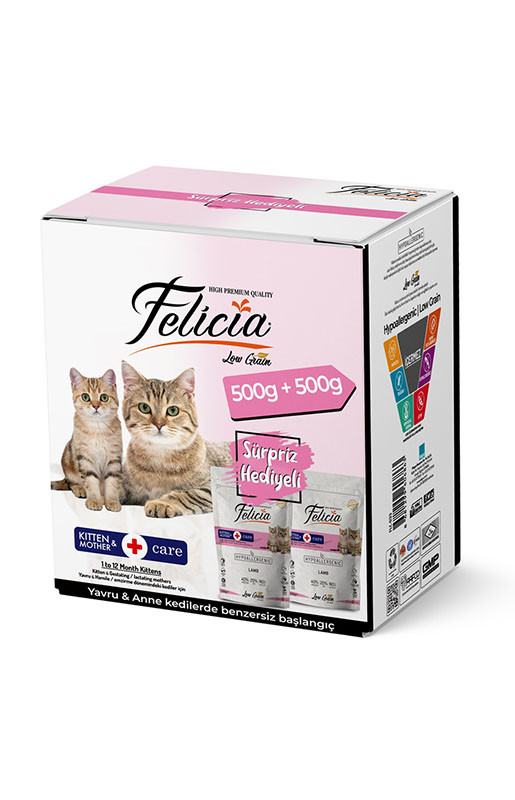 Felicia Kitten & Mother Care is a premium hypoallergenic cat food tailored for kittens aged 1-12 months and nursing or pregnant cats. With lamb as the primary protein source, this highly digestible formula supports healthy growth, lactation, and overall development during critical life stages. It provides all the essential nutrients needed for both kittens and their mothers to thrive.