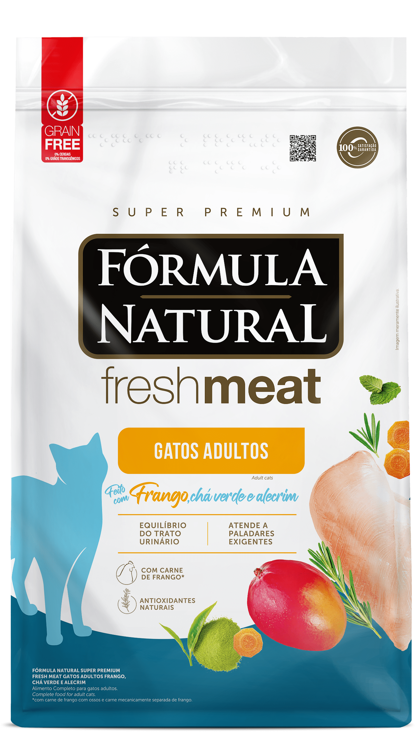Fórmula Natural Fresh Meat Formula is specially designed to meet the nutritional needs of adult cats. With selected chicken meat, green tea, and rosemary, this formula supports overall health, promotes urinary tract balance, and provides natural antioxidants for vitality and well-being.